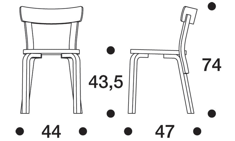 アルヴァ・アアルトによる「チェア 69」は、アルテックの椅子の中で、最も人気の高いダイニングチェアのひとつです。広くて快適な座面としっかりと身体を支えてくれる背もたれ、アルヴァ・アアルトが開発した「L - レッグ」からなる構造で、無駄な要素を削ぎ落としたシンプルなデザインです。代表的なバーチ材の自然の色みを活かしたナチュラルラッカー仕上げの他、豊富な色と仕上げのバリエーションを揃えています。