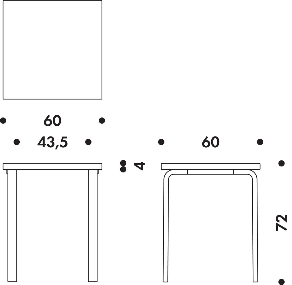 正方形のアアルトテーブルは、壁につけても、部屋の真ん中に設置しても、コンパクトな空間を有効に使うことができます。さらに他の形のアアルトテーブルと組み合わせて、暮らしの数だけ無限の使い方が存在します。「「テーブル 80C (60×60cm) 」は、長方形の「テーブル 80A (120×60cm) 」や半円の「テーブル 95 (120×60cm) 」と組み合わせて、さまざまなテーブルセッティングが可能です。