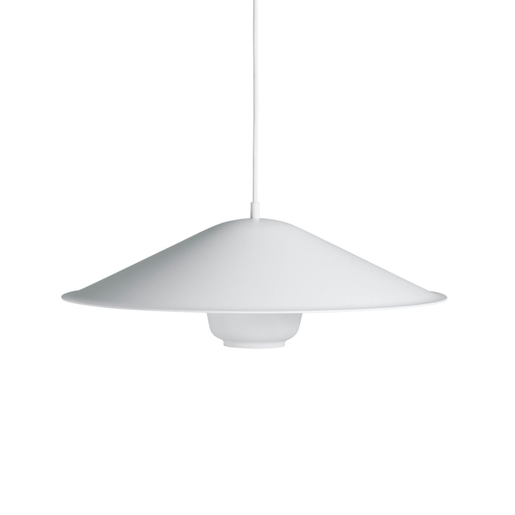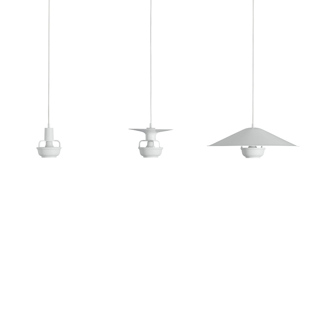眩しさを感じさせないようにデザインされた籠状の中心部から直接光を下方に投射し、柔らかな間接光を上方へと分散させる基礎構造に傘型シェードを組み合わせた「コリペンダント・デューンシェード」は、シェードが光を再び下方に反射することでより広い範囲を照らします。大きめのテーブル上に吊るす主役のペンダントライトとしておすすめです。 - Materials
