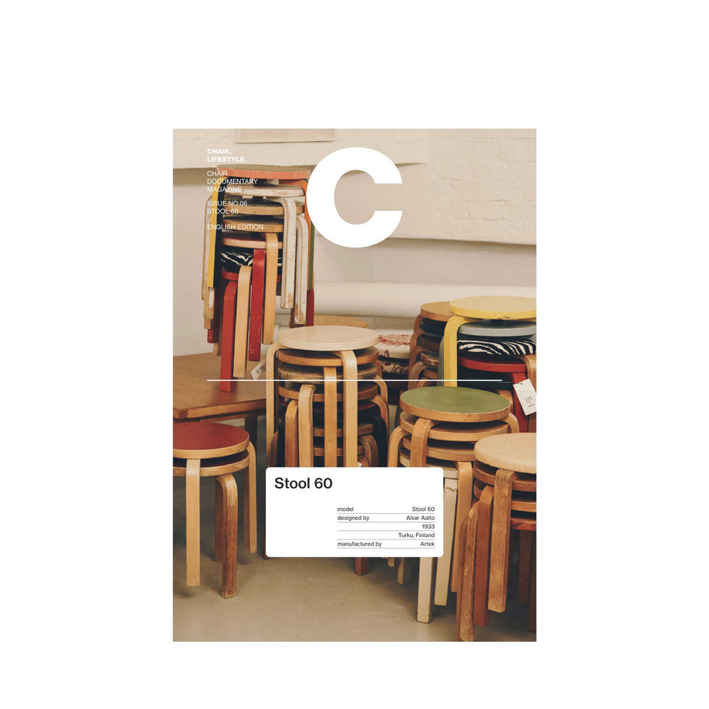 「Magazine C」は韓国・ソウル発のデザイン雑誌です。韓国語版で2024年に創刊し、その後英語版の刊行も開始された、この雑誌は、各号で1脚の「アイコニックな椅子」を取り上げ、それをドキュメンタリー的に深掘りし、歴史やデザイナーの背景、製造工程、文化的影響、実際の使用例までを網羅して特集するコンセプチュアルマガジンです。「Magazine C」の第6号では、普遍的な椅子として、アルテックの「スツール 60」が特集されました。アルヴァ・アアルトの人生に加え、彼の建築作品や家具デザインの代表作、アルテックと関係性の深いデザイナーとして皆川明さんやフォルマファンタズマのインタビュー、日本・韓国・フィンランドを含むスツールの使用事例など、読み応えたっぷりの一冊です。Artek Tokyo店頭とArtek Japan公式サイトでは、英語版のみを取扱い、販売しています。